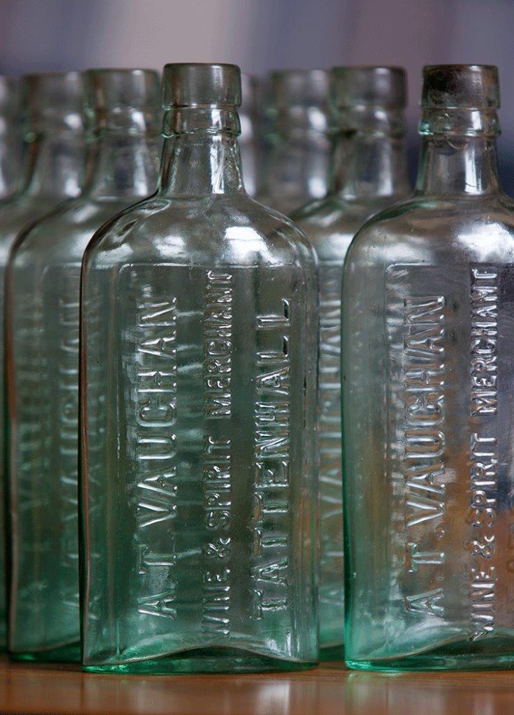 Selection of Vintage Green Glass Beer Bottles local to W Jones, Aldersey Arms, Tattenhall Road, Tattenhall