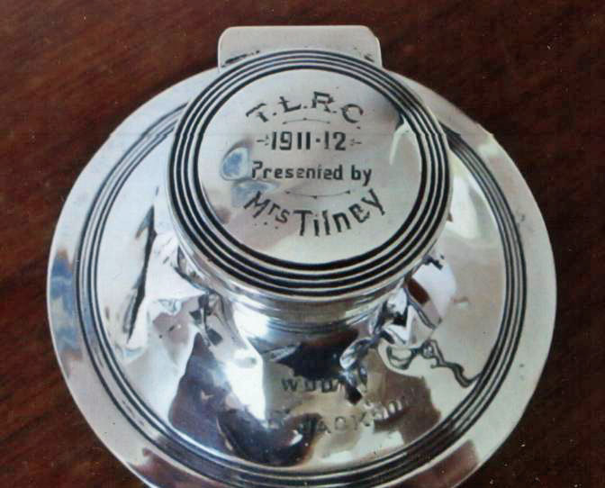 Silver Inkwell of the ‘Tattenhall Ladies Rifle Club’ dated 1911-12 and presented by Mrs Tilney. The trophy was presented to SB Jackson (just visible on the base of the Inkwell).