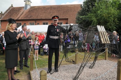 Our centennial event was attended by hundreds of individuals – many local to the village but many from surrounding districts too. This was ‘community-wide engagement’ at its very best. The Lord-Lieutenant of Cheshire, David Briggs, M.B.E., K.St.J. was charged with unveiling our permanent legacy, a ‘Horse of War’, and Cllr. Herbert Manley, the current Sheriff of Chester, declared our Exhibition to be officially ‘open’ with the obligatory cutting of the red ribbon. Leader of the Council and Tattenhall Ward Councillor, Mike Jones, who was instrumental in supporting and funding this project and resident Forge Master, Andrew Smith, who worked tirelessly in creating our permanent tribute to the plight of horses in this conflict, were also in attendance.